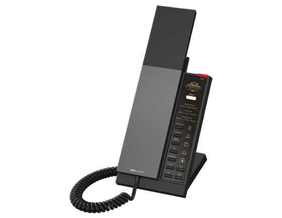 The Snom HD340 is the slim option for hotels and guest rooms that focus on the essentials without compromising on comfort. With just two rows of keys and a clear operating structure, it offers all the important functions: 5 speed dial keys for hotel facilities, hands-free function, volume control and mute.