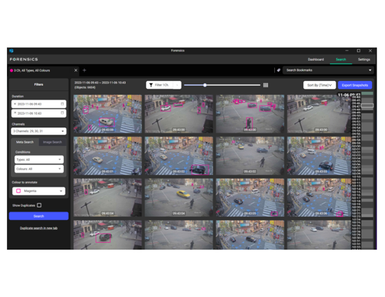 VCAforensics is a data aggregation and search tool that is constantly extracting metadata from every connected camera, every second, building up an extensive database of metadata about objects in the camera’s field of view. Enhancing VCAforensics, our Search and Track functionality enables the search of all this metadata to find a person, or object of interest within a matter of seconds. For example, search for all people wearing red tops and black trousers, carrying an orange bag between 10 am and 4 pm on this day and within seconds, the image will be returned.
