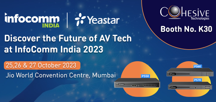 InfoComm India 2023 will be held from October 25-27, 2023 at the Jio World Convention Centre, Mumbai. Cohesive Technologies and Yeastar will be exhibiting at Booth No K30. For more information on the event, please visit https://www.infocomm-india.com/