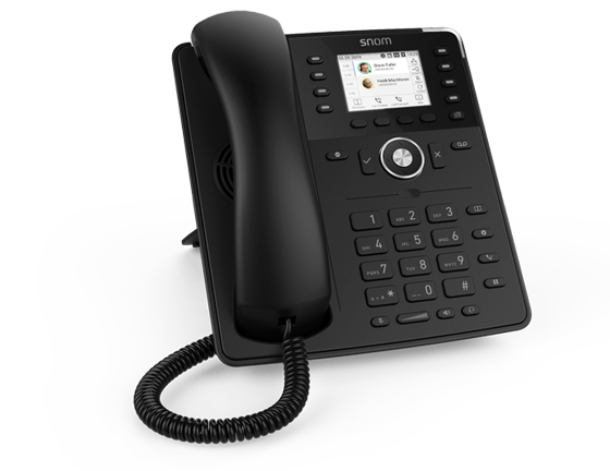 The Snom D735 convinces with its timeless design, two colour variants, a high-resolution 2.7" colour display, which is surrounded by 8 self-labelling, function keys with multi-coloured LEDs and also has a proximity sensor, which maximises the labelling of the function keys on the display when approached.